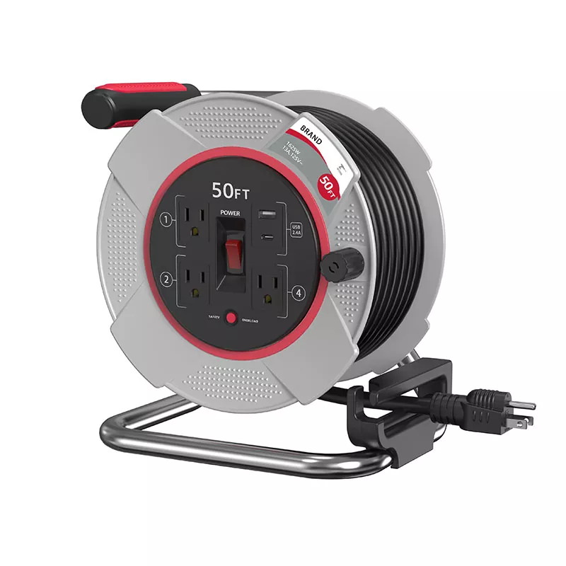 3 منافذ USB2.4A بكرة الحبل البلاستيكي 50 قدمًا مع حماية الحمل الزائد