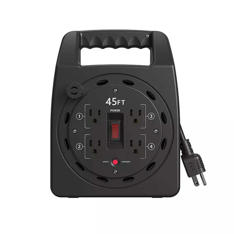 • 4 منافذ بكرة الحبل البلاستيكي 45 قدمًا مع حماية الحمل الزائد4 منافذ بكرة الحبل البلاستيكي 45 قدمًا مع حماية الحمل الزائد